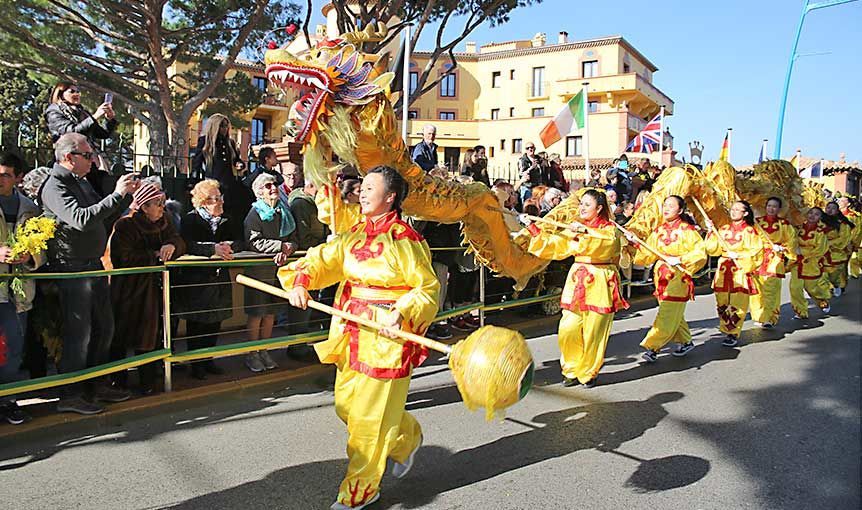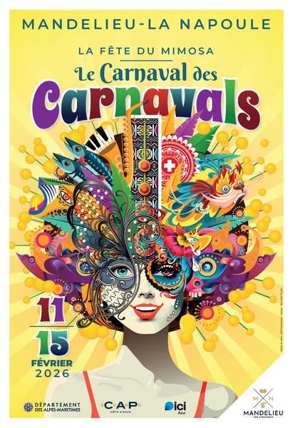 •A partir de 11h - ambiance musicale et artistes de rue à la Napoule • 14h30 - Grand corso et bataille fleurie - Avenue Henry Clews Le coup de canon tiré du Château de La Napoule marquera le départ du Grand Corso et de la bataille fleurie. 12 chars déambuleront sur l’avenue Henry Clews pour célébrer notre fleur fétiche. 12 chars pour célébrer 12 carnavals à travers le monde ! Rio, Venise, Mexique, Goa en Inde, Chine, Nouvelle-Orléans, les Barranquilla en Colombie, Bâle en Suisse, Dunkerque, le Cap en Afrique du Sud, Oruro en Bolivie, sans oublier les emblématiques Carnavals de Nice et Menton. Des centaines d’artistes danseurs, acrobates et musiciens représenteront chaque pays, dans un joyeux brouhaha musical, ponctué par une bataille de fleurs éclatante !