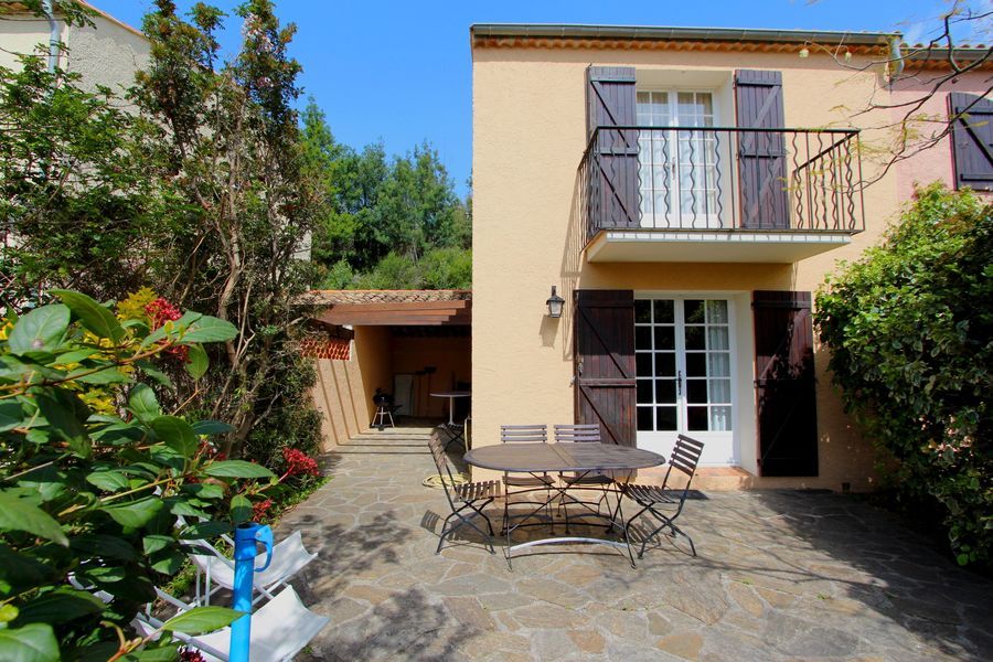 Offre Route du Mimosa (validité du 1er janvier au 31 mars): Réservation : 06 63 33 61 59 Dans une propriété privée au calme et arborée de 5ha, une villa jumelée avec terrasse, piscine collective, se situant à 300 m du centre du village médiéval, de ses commerces régionaux et à 3km des belles plages de sable fin de la côte Varoise. Un agréable chemin vous mène à un étang pour découvrir la faune et flore du massif des Maures.